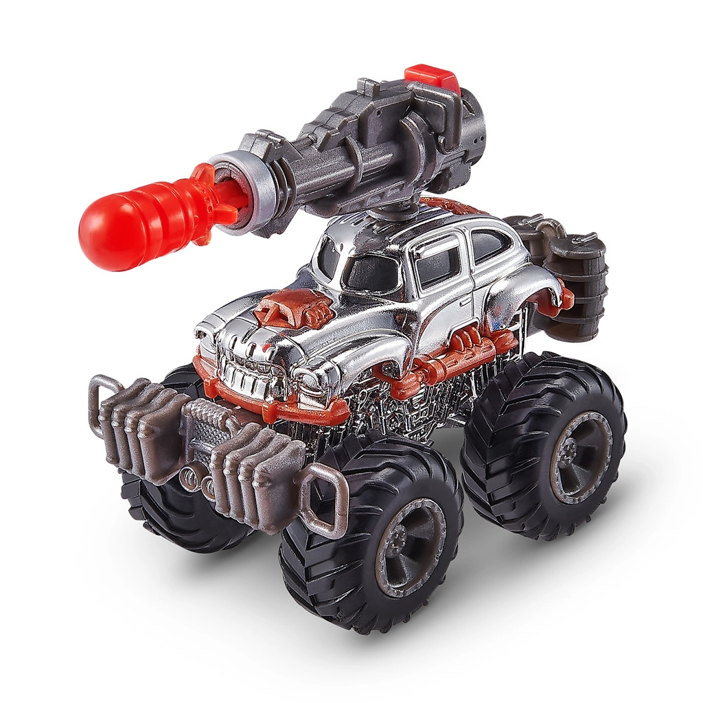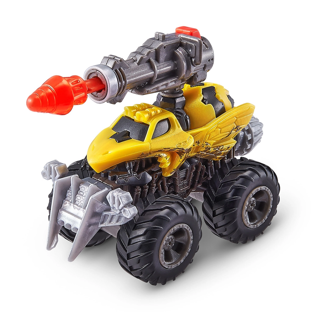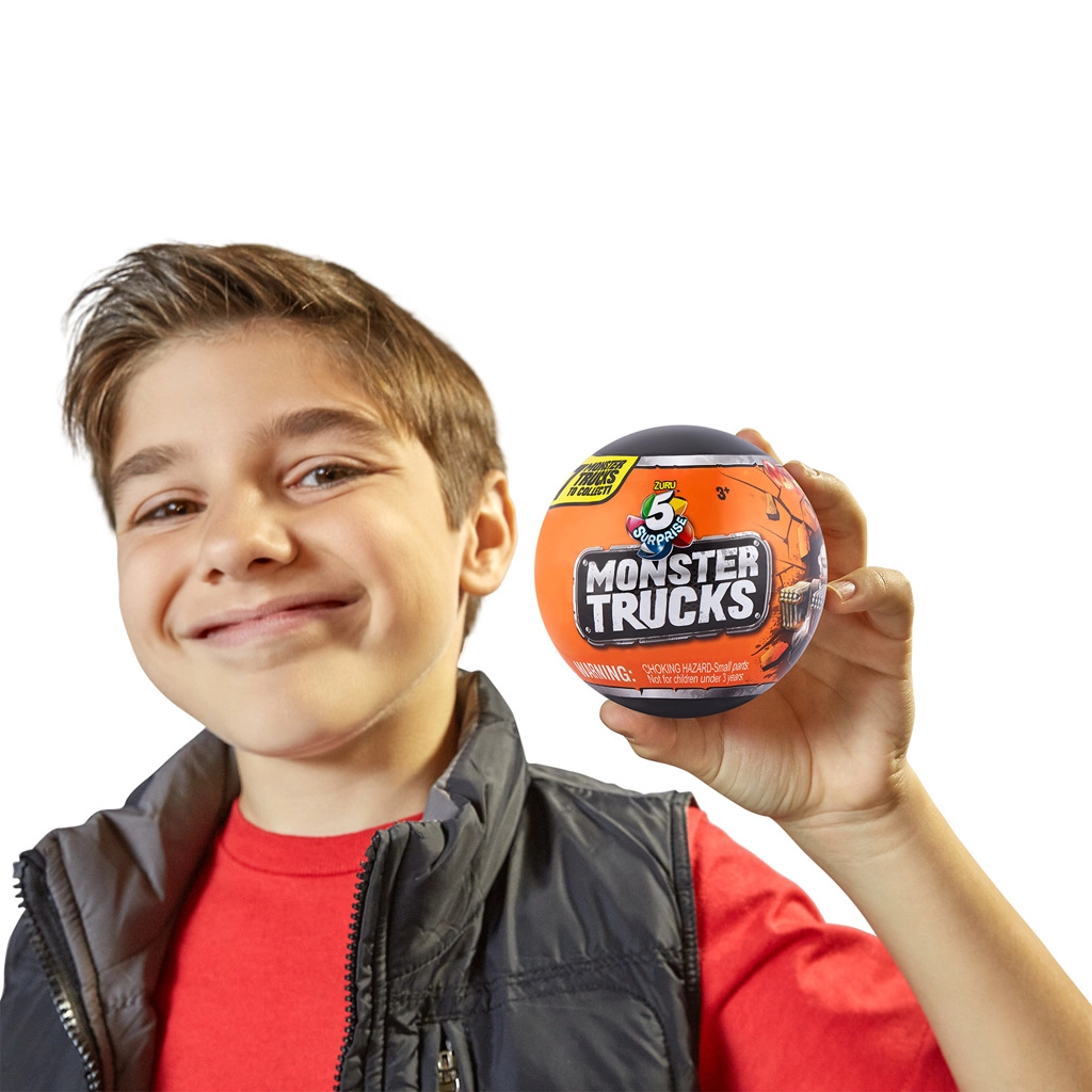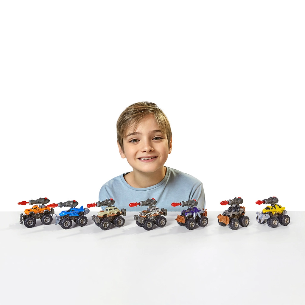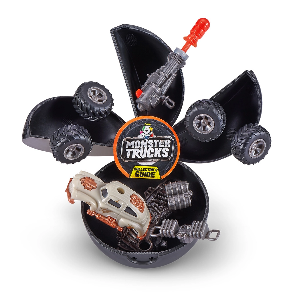 Naujoji 5 SURPRISE Monster Trucks serija atneša jaudinančią išpakavimo patirtį ir puikų veiksmo žaidimą. Kapsulės viduje rasite dalis mini monster truckui surinkti: masyvius bekelės ratus, rėmą, buferius, kėbulą ir šaudantį paleidiklį įtemptoms dvikovoms. Išpakuok, surink, lenktyniauk ir kovok!