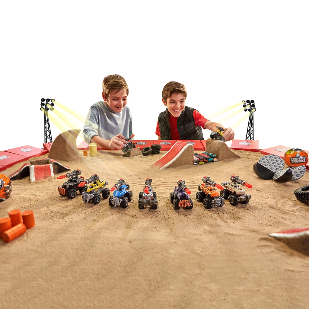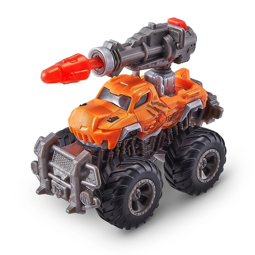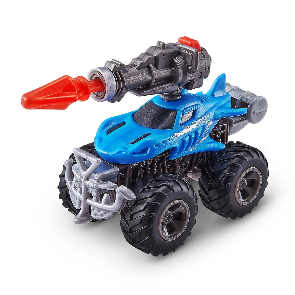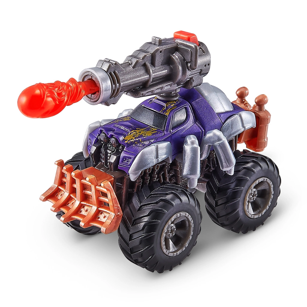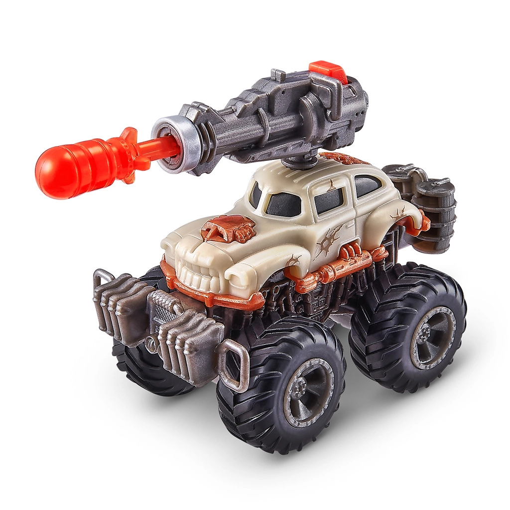 Naujoji 5 SURPRISE Monster Trucks serija atneša jaudinančią išpakavimo patirtį ir puikų veiksmo žaidimą. Kapsulės viduje rasite dalis mini monster truckui surinkti: masyvius bekelės ratus, rėmą, buferius, kėbulą ir šaudantį paleidiklį įtemptoms dvikovoms. Išpakuok, surink, lenktyniauk ir kovok!