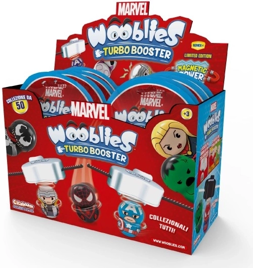Atrask pramogas su Wooblies kolekcija, įkvėpta MARVEL superherojų! Kiekviename rinkinyje yra magnetinė Wooblies figūrėlė (siurprizas), Turbo Booster šaudyklė greitam įsukimui ir iššovimui, kolekcinė kortelė ir lankstinukas su žaidimais ir sąrašu. Mėgaukis begalinėmis žaidimo galimybėmis, varžykis su draugais ir rink visas figūrėles.