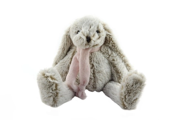Minkštas plišinis triušiukas Tosiek, žavingas pilkas triušiukas su rožiniu skarele, bus puikus jūsų vaikų palydovas: