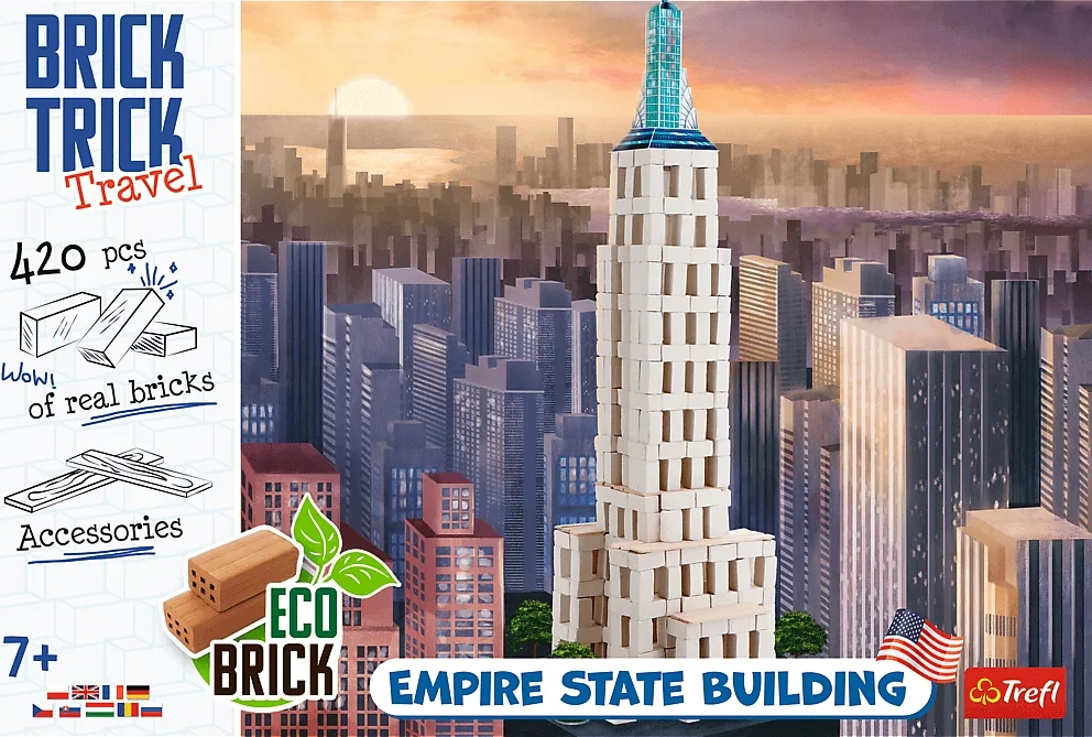 Atraskite statybų pasaulį su BRICK TRICK Travel serija ir sukurkite vieno garsiausių pasaulio pastatų modelį – EMPIRE STATE BUILDING. Plyta po plytos, pjaustydami ir klijuodami lenteles, žingsnis po žingsnio pastatysite detalų ir stabilų statinį. Galiausiai jį užbaigsite pridėtomis dekoracijomis autentiškai išvaizdai.