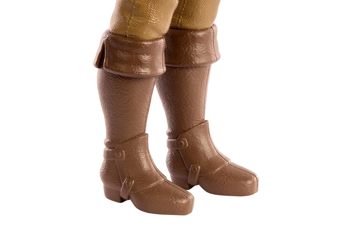 Tekstūruoti aukšti batai ir kruopščiai suformuoti aksesuarai suteikia figūrėlei kolekcinę kokybę ir patvarumą žaidimams.