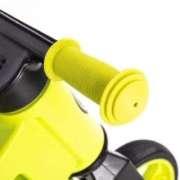 Minkštos padangos užtikrina tylią eigą be žymių ant grindų, jų neįmanoma pradūrti ir nereikia pumpuoti. Vairo fiksatorius neleidžia persisukti ir saugo vaiko pilvuką, o ypač minkštos rankenos su praplatintais galais – rankytes. Ašių aukščio reguliavimas 2 padėtyse leidžia pritaikyti dviratuką ir mažesniems, ir didesniems vaikams.