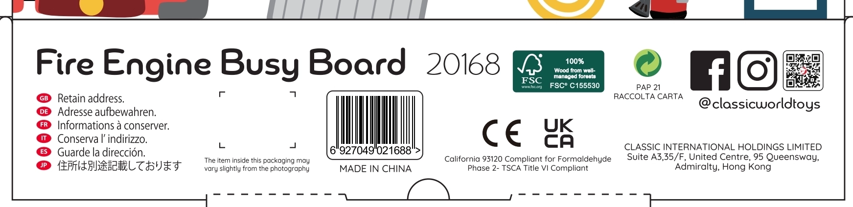 Atraskite smagų ir saugų kelią vaiko įgūdžiams lavinti. Medinė 6-i-1 manipuliacinė lenta CLASSIC WORLD su gaisrininkų motyvu padeda lavinti smulkiąją motoriką, akių–rankų koordinaciją ir kūrybiškumą vaikams nuo 12 mėnesių. Aukšta kokybė ir netoksiški dažai garantuoja patvarumą ir saugumą kasdien žaidžiant.