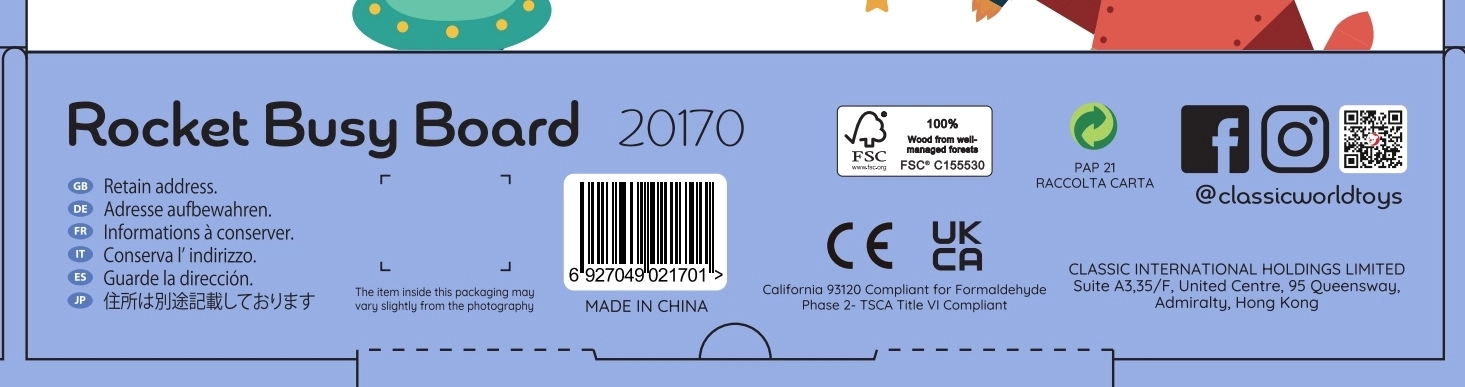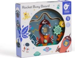 Medinė manipuliacinė lenta raketos formos iš CLASSIC WORLD siūlo 6‑i‑1 smagias veiklas vaikams nuo 12 mėn.: labirintas, karoliukai, sukamasis ratukas, mygtukai, magnetinis elementas ir sukiojami rankenėlės. Skatina smulkiąją motoriką, akių–rankų koordinaciją ir kūrybiškumą, pagaminta iš kokybiškos medienos ir nudažyta netoksiškais dažais.