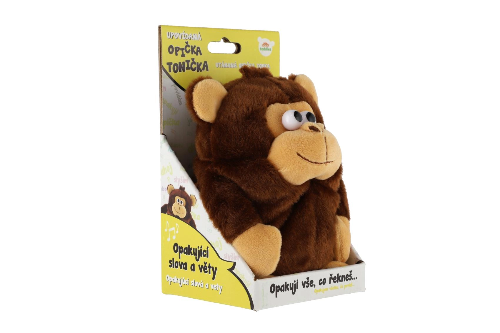 Pliušinė beždžionėlė Tonička – puiki draugė vaikams nuo 3 metų. Įjungus ji kartoja viską, ką girdi, juokingai pakeistu balsu ir palydi tai galvos judesiu. Vaikai patirs daug interaktyvių pramogų, lavins kalbą ir kūrybiškumą.