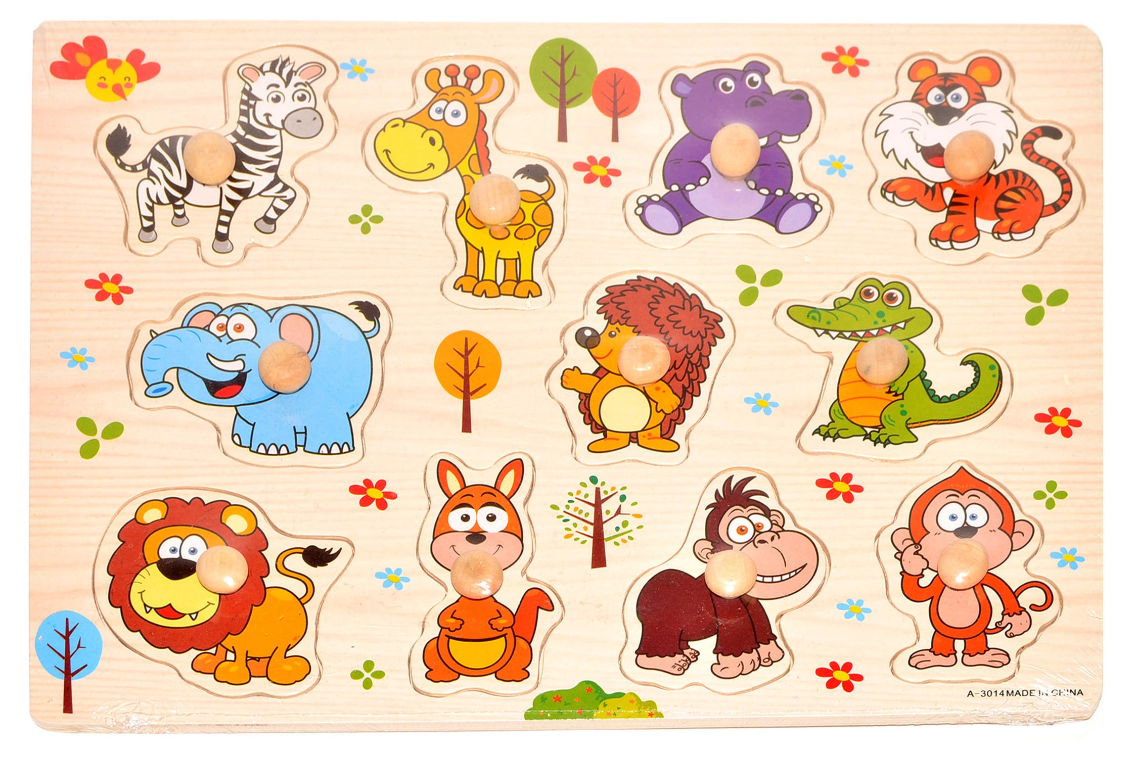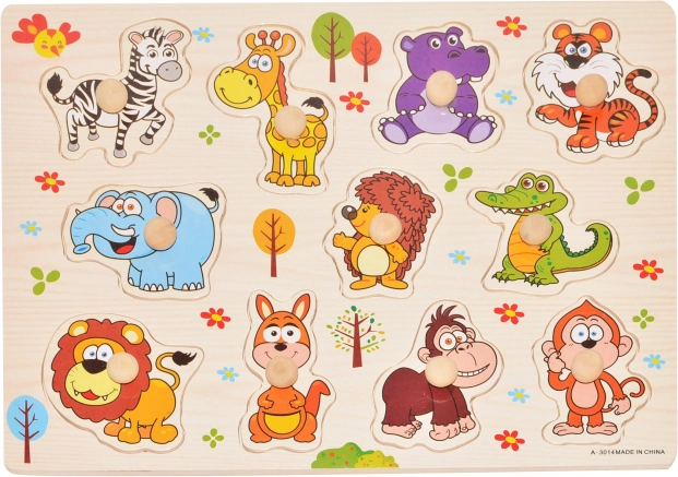 Ši kokybiška medinė dėlionė su gyvūnų motyvais idealiai tinka pirmiesiems vaiko mokymosi žingsniams. Dėl tvirtų detalių ją lengva sugriebti, ji padeda lavinti akių–rankų koordinaciją ir kantrybę. Ryškios iliustracijos sudomina ir skatina vaikus žaisti.