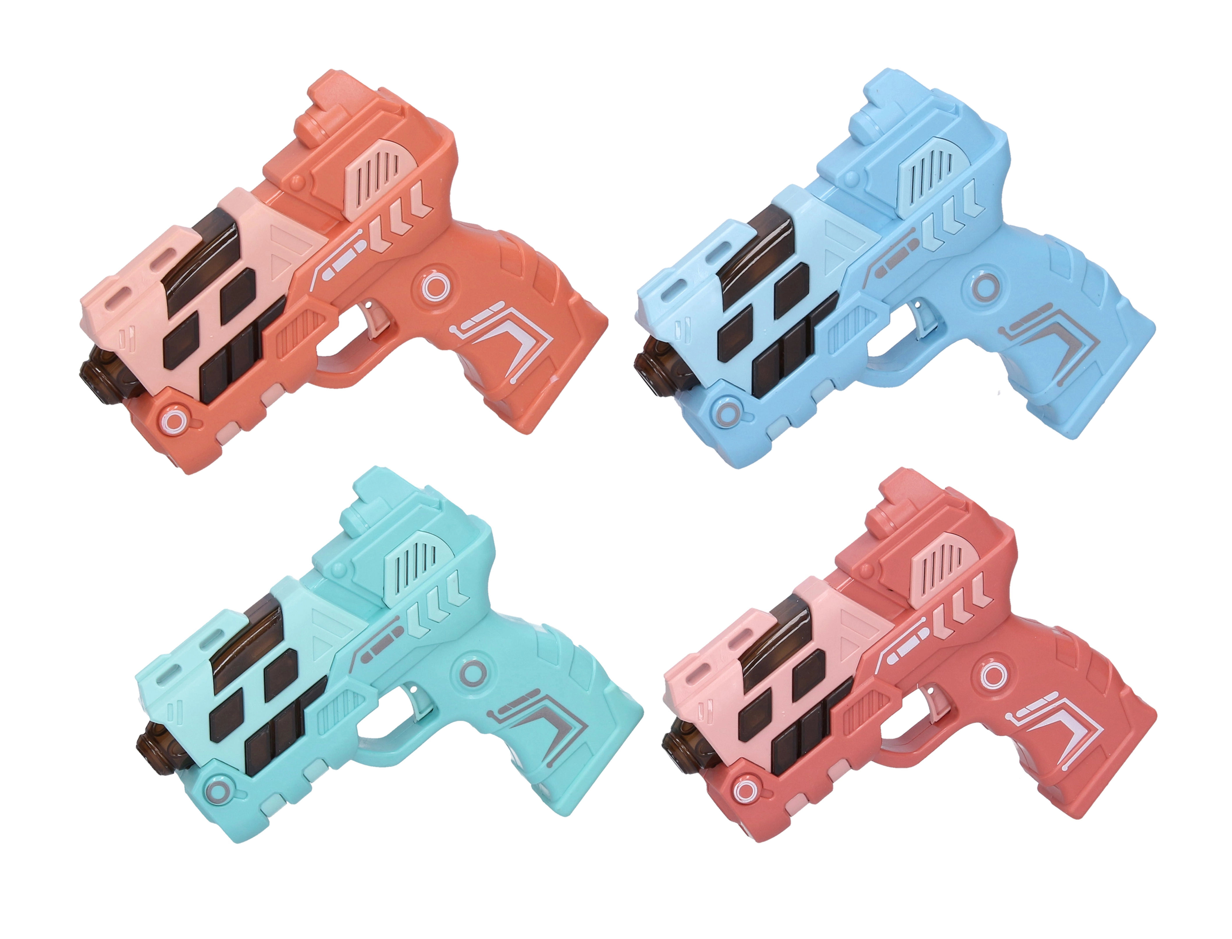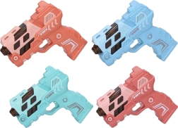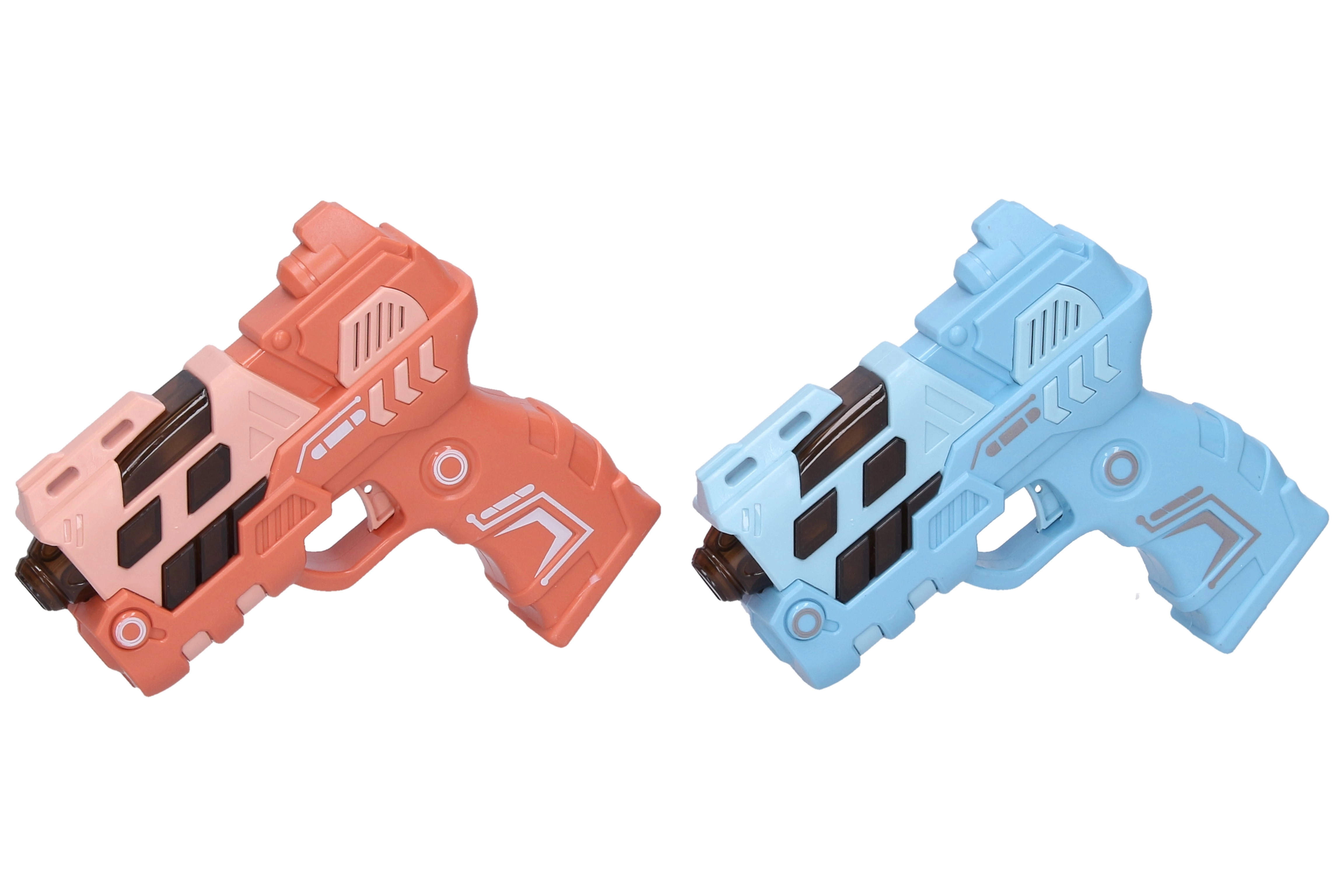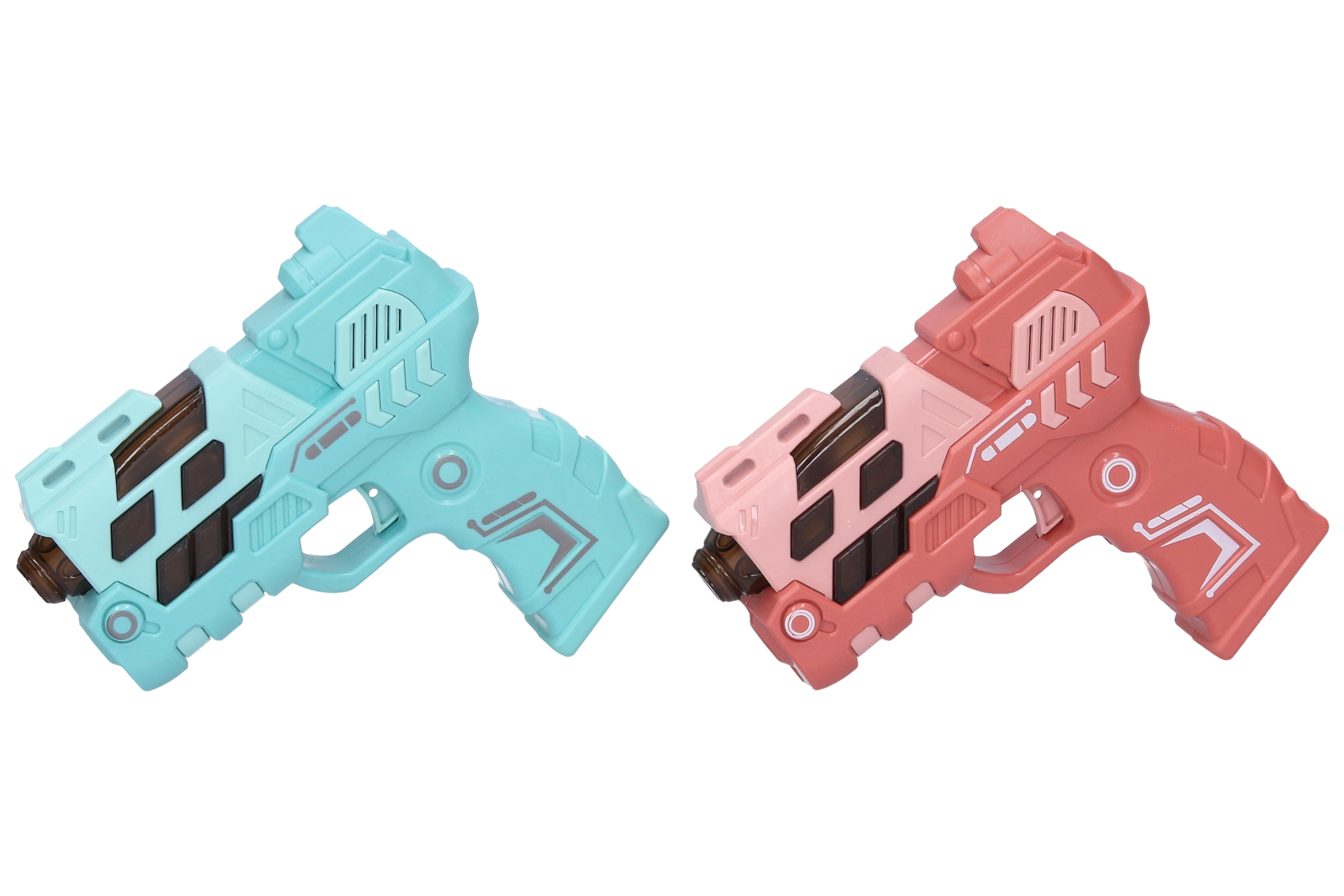 Smagus 12 cm ilgio vaikiškas pistoletas siūlo šviesos ir garso efektus bei vaizdo projekciją dar didesniam veiksmui. Galima rinktis iš 4 spalvų variantų (mėlyna, žalia, oranžinė, rožinė). Maitinimas: 2× AAA baterijos, kurios nėra įtrauktos į komplektą.