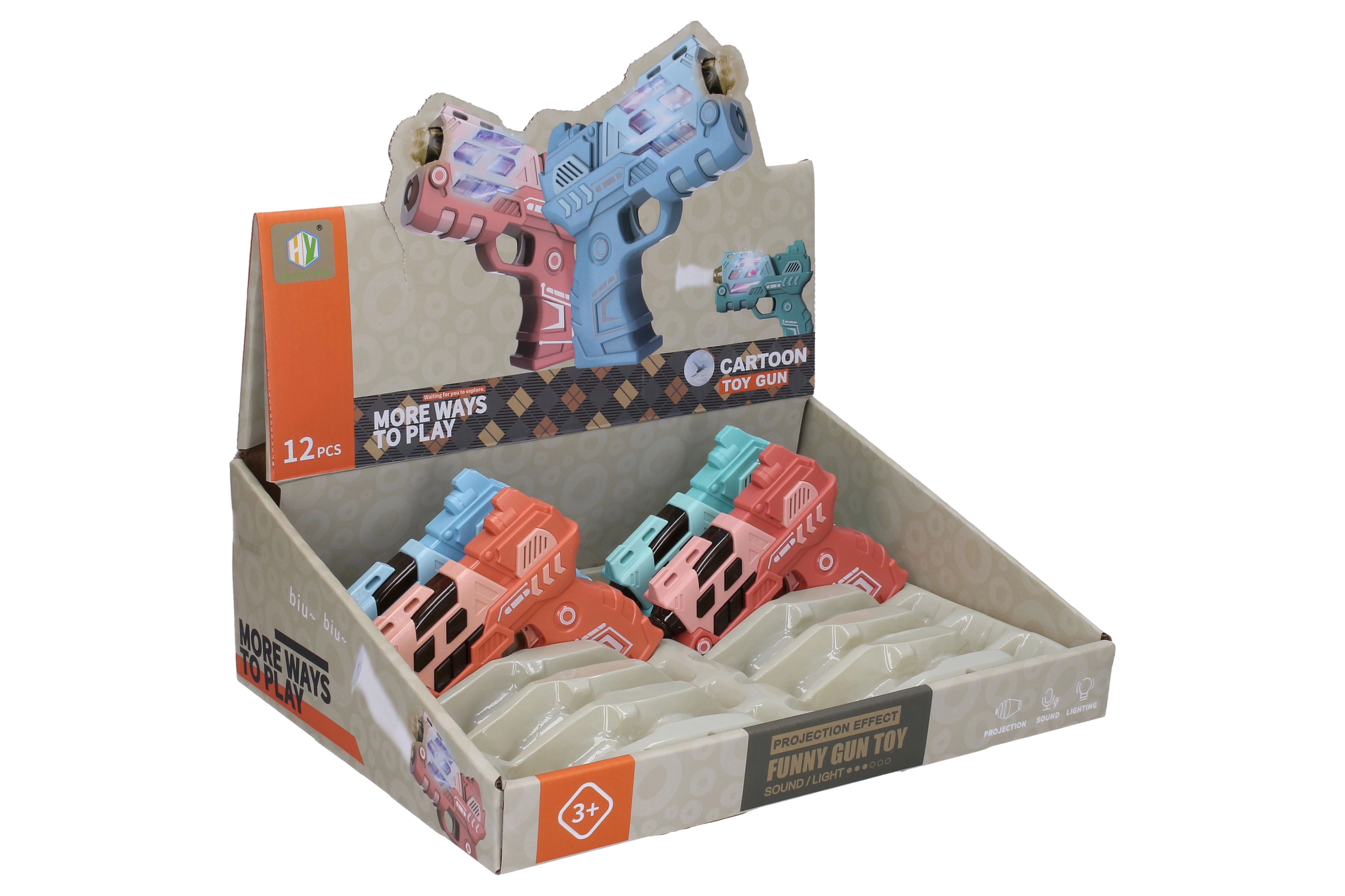 Šis kompaktiškas vaikiškas pistoletas suteikia daug pramogų dėl šviesos ir garso efektų bei įspūdingos vaizdo projekcijos. Dėl 12 cm ilgio jį patogu laikyti net mažesnėms rankoms, todėl jis idealiai tinka aktyviems žaidimams namuose ir lauke. Iš keturių spalvų galima pasirinkti mėgstamiausią atspalvį.