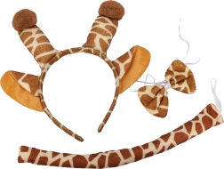 Akimirksniu tapkite žavinga žirafa! Šis universalus karnavalo rinkinys apima lankelį su ausytėmis, kaklo kaspinėlį ir dailią uodegą – puikiai tinka karnavalui, vaikų šventėms ir teminėms nuotraukoms. Lengva užsidėti ir patogu nešioti, kad galėtumėte visiškai mėgautis pramoga. Lengva transformacija, lengva ir patogi medžiaga, pilnas aksesuarų rinkinys.