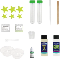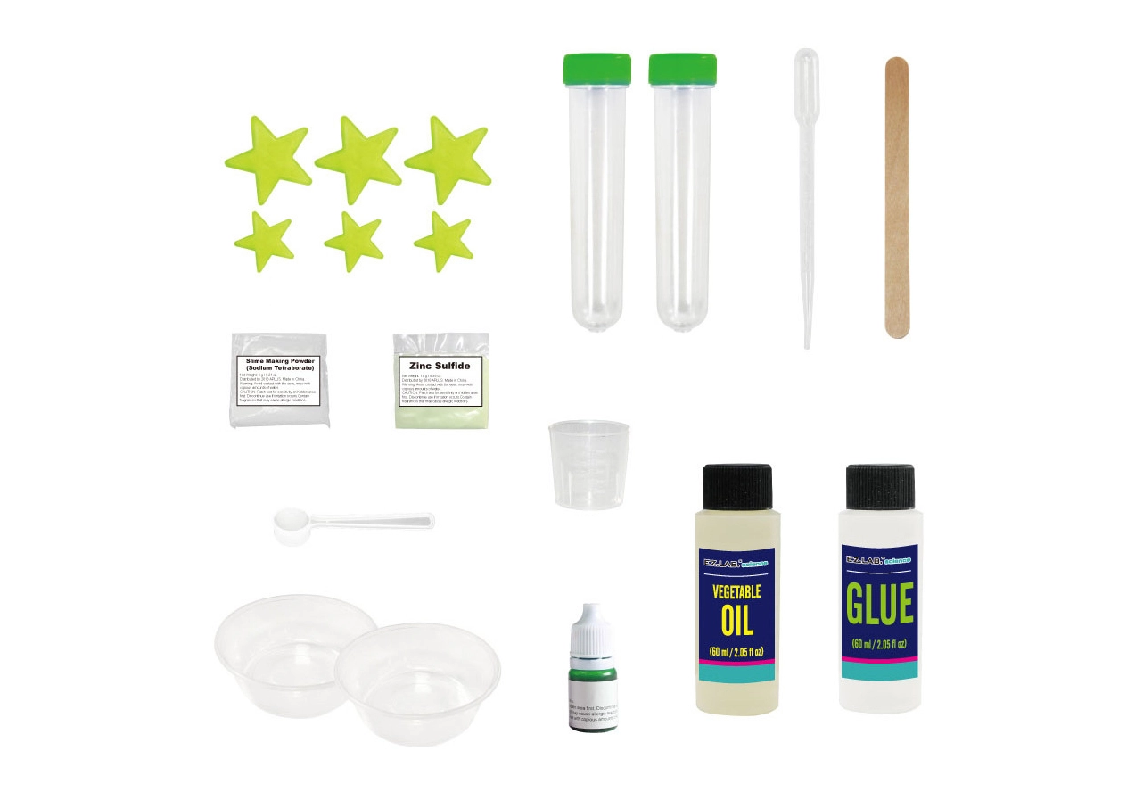 Šis kūrybinis rinkinys idealiai tinka vaikams ir pradedantiesiems – per kelias minutes sukursite puikų švytintį glitą. Tereikia sumaišyti glito klijus su švytinčiaisiais milteliais, po lašelį pridėti aktyvatorių ir maišyti iki norimos konsistencijos. Kuo daugiau aktyvatoriaus, tuo kietesnis glitas – lengvai prisitaikysite tirštumą pagal savo poreikius.