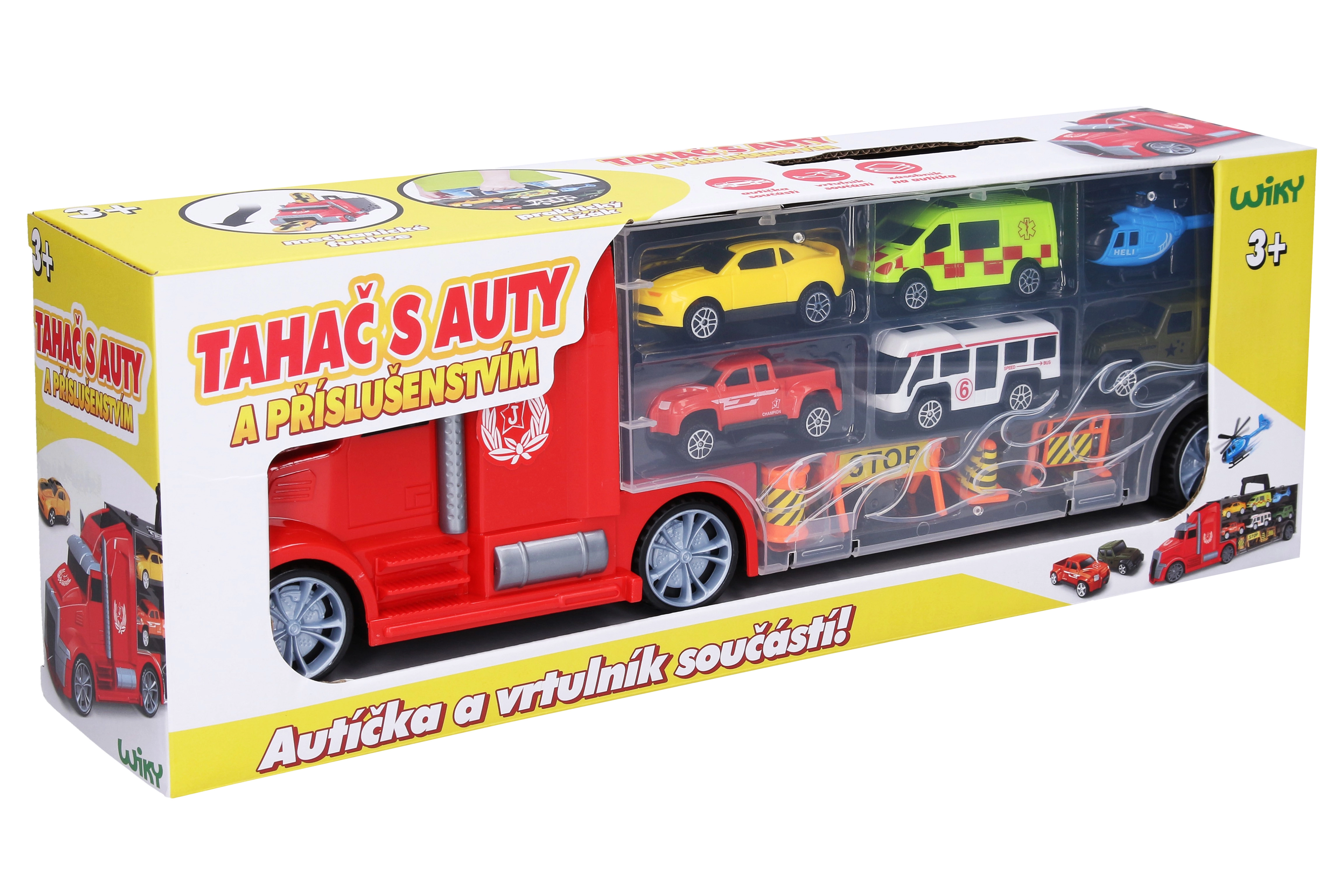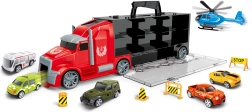 - Rinkinio turinys: vilkikas su priekaba, 5 mašinėlės, 1 sraigtasparnis