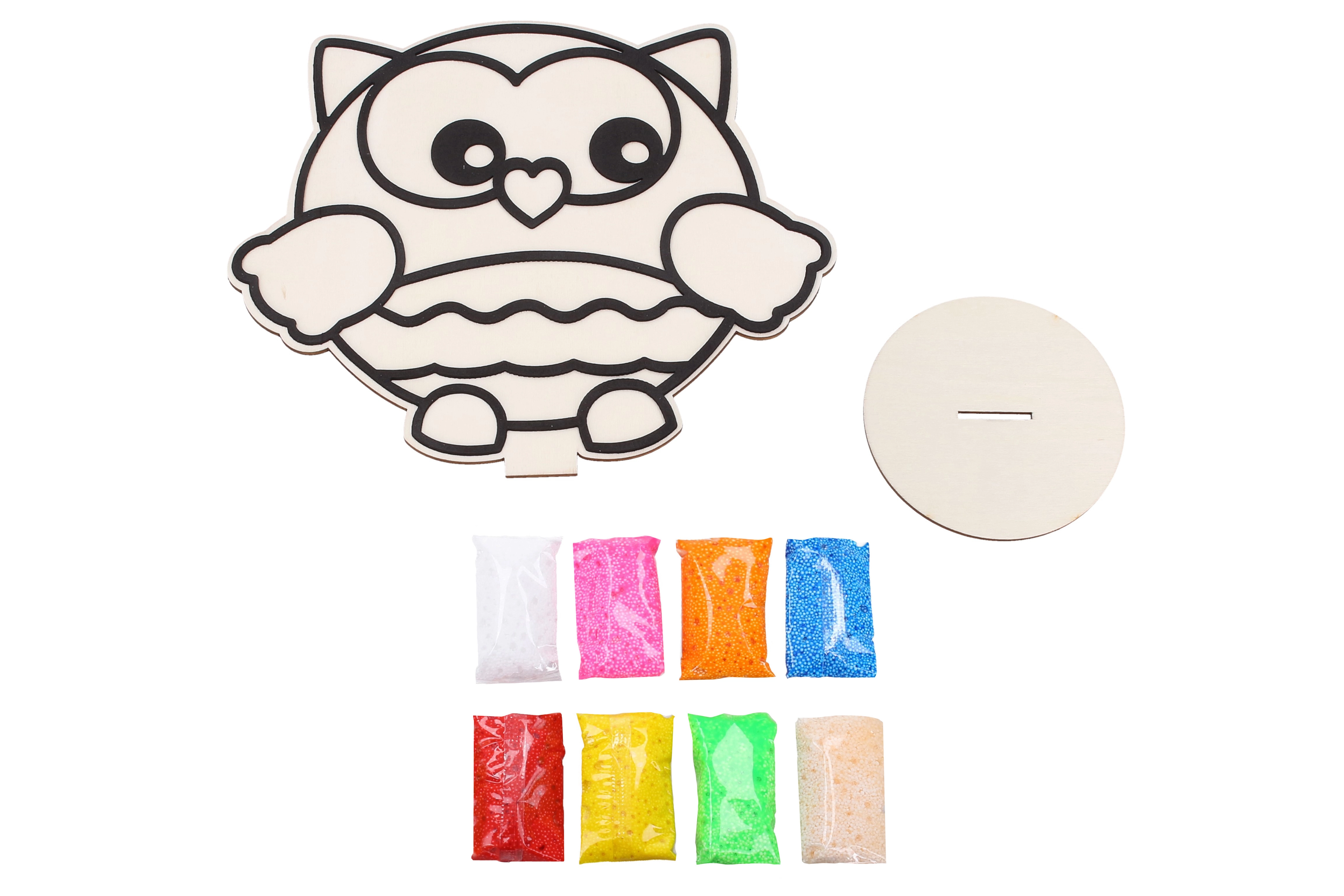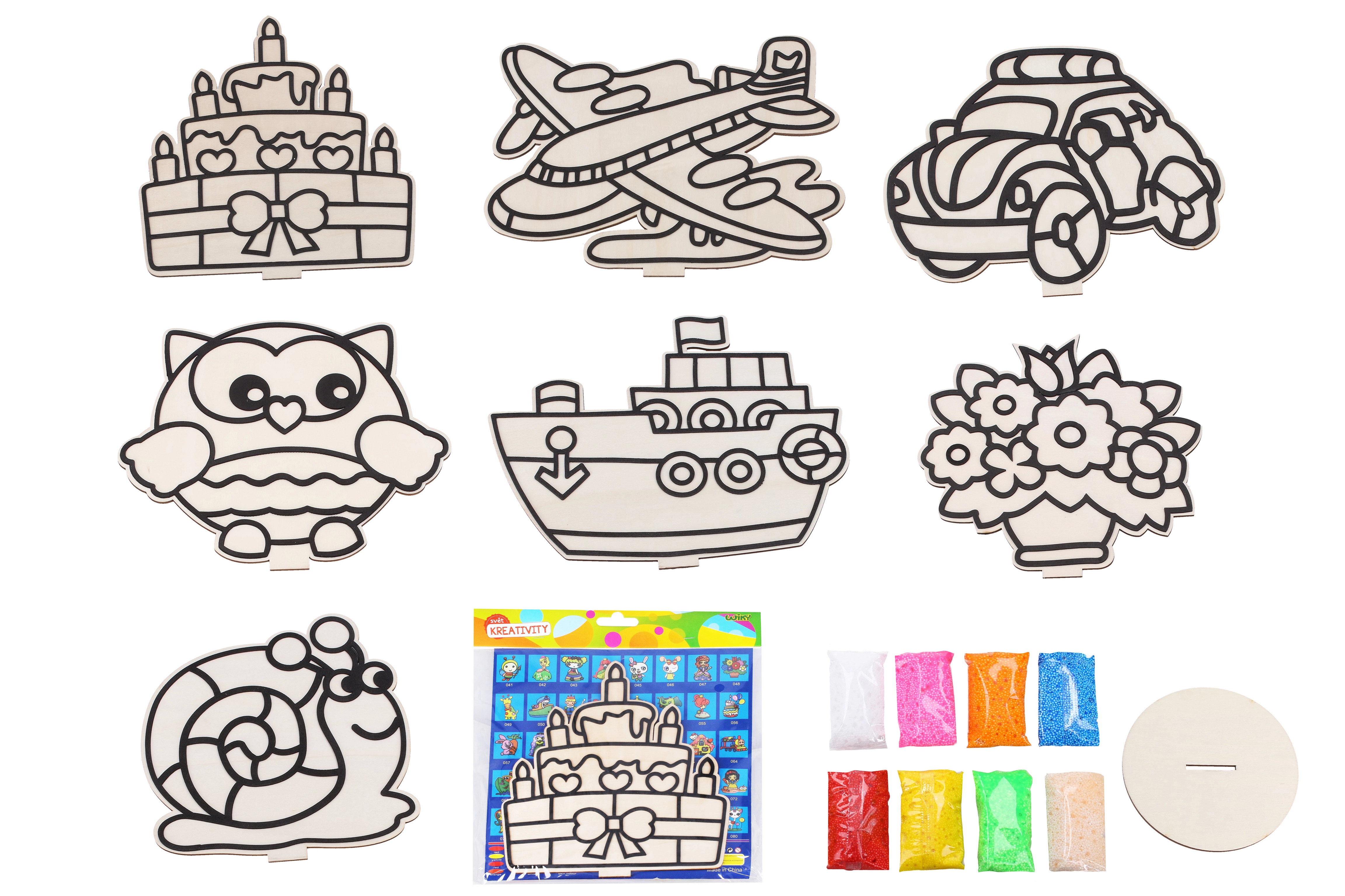 Šis kūrybinis rinkinys suteikia viską, ko vaikams reikia originaliam 3D paveikslėliui sukurti. Medinė šabloninė plokštelė su ryškiais kontūrais lengvai įstatoma į stovelį, o atskiras sritis užpildysite burbuliukiniu modelinu 8 sodrių spalvų. Rezultatas – stabili dekoracija, kuri pagyvins vaikų kambarį.