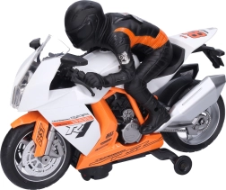 Šis detaliai sukurtas lenktyninis motociklas su vairuotojo figūrėle suteiks vaikams daug pramogų ir įtampos trasoje. Dėl šviesos ir garso efektų važiavimas atrodo autentiškas ir skatina fantaziją bei kūrybišką žaidimą.