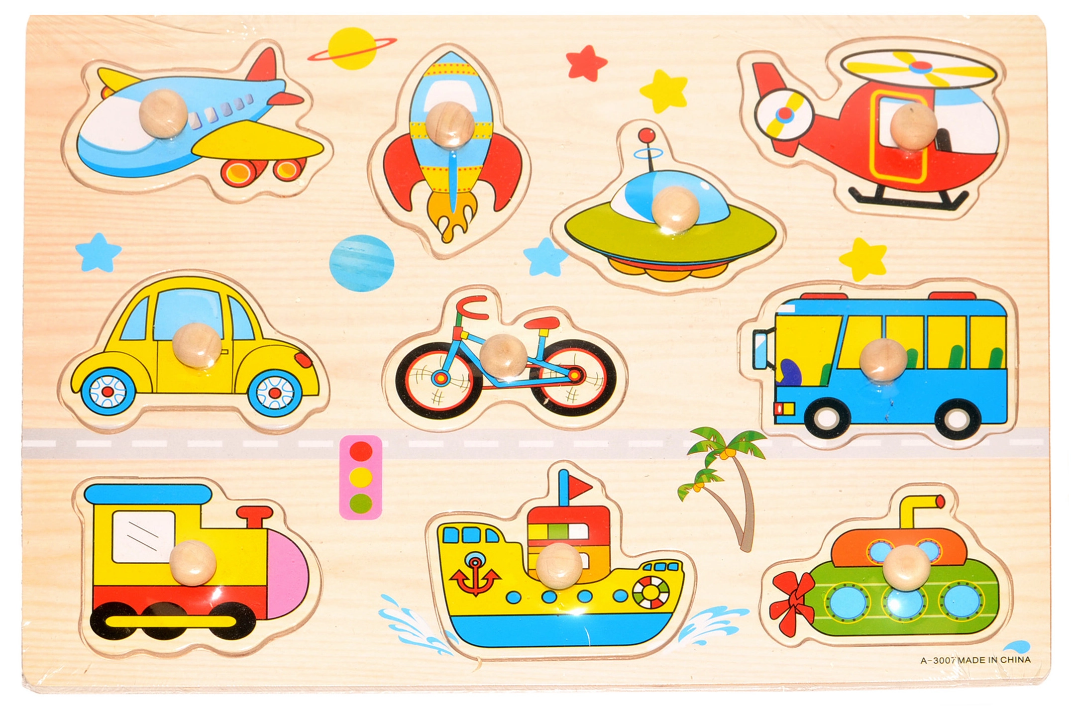 Medinė dėlionė Transportas – ideali žaislas, padedantis lavinti vaikų smulkiąją motoriką ir loginį mąstymą. Puikus pasirinkimas vaikams, mėgstantiems automobilius ir transporto priemones.