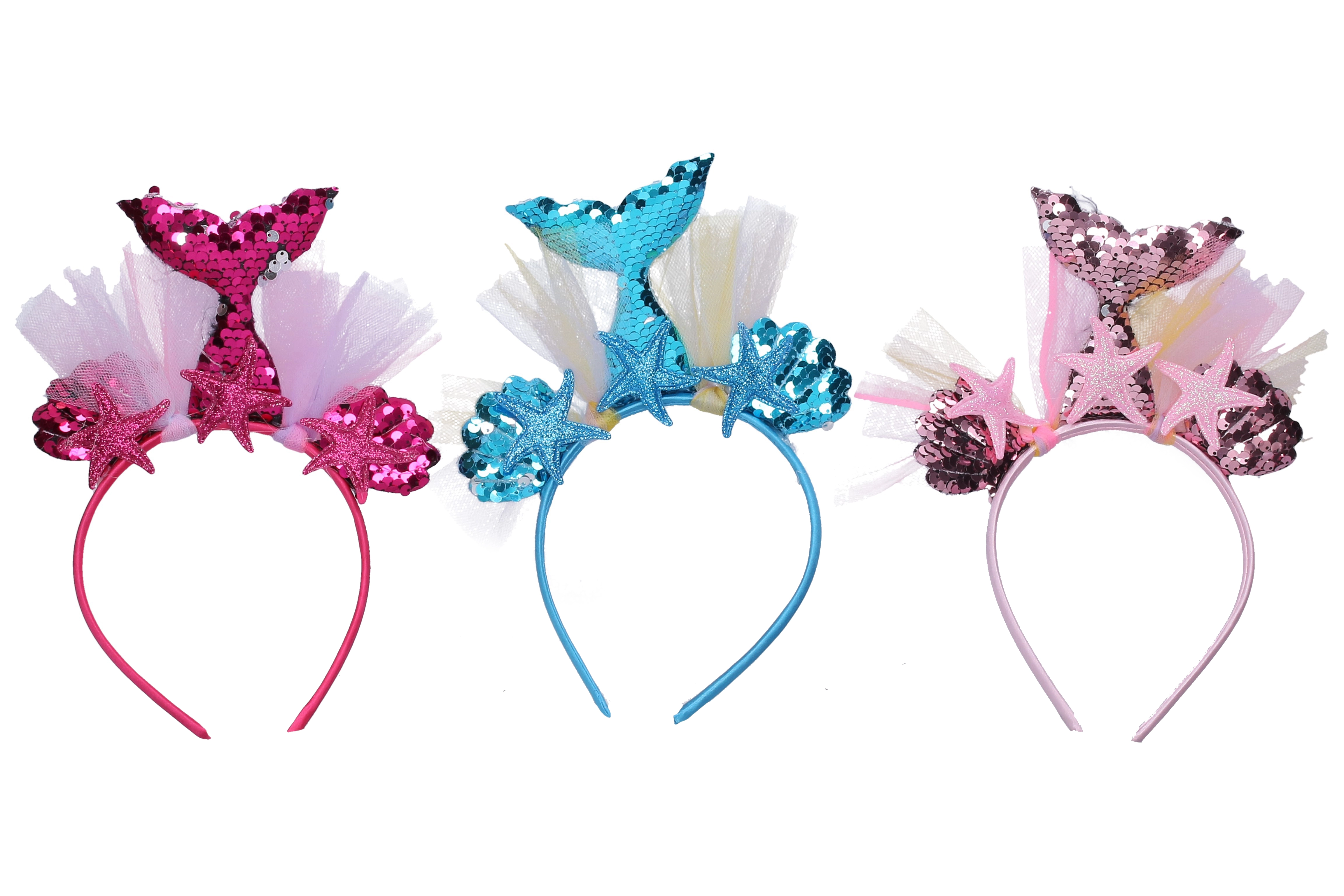 Elegantiška karnavalinė galvos juosta, įkvėpta Undinėlės motyvo, suteiks jūsų kostiumui magiško žavesio. Galima rinktis iš trijų gražių spalvų.