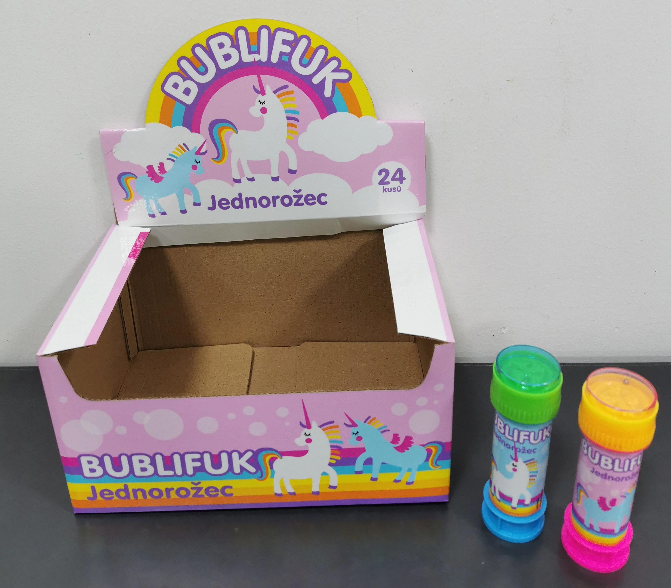 Muilo burbulų pūstuvas su vienaragio motyvu yra puikus pasirinkimas nerūpestingoms vaikų pramogoms. Kompaktiškas buteliukas, kurio talpa 50 ml, telpa į kišenę ar kuprinę ir bet kada paruoštas sukurti daugybę žvilgančių burbuliukų. Saugios sudėties ir paprasto naudojimo dėka tai idealus aksesuaras žaidimams sode, parke ar šventėse.