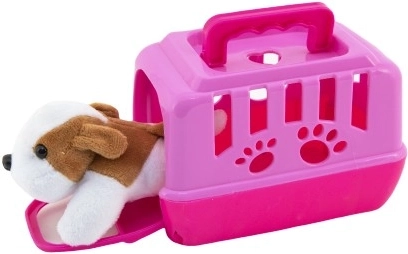 Šis rinkinys sujungia švelnų pliušinį šuniuką ir lengvą plastikinį dėklą su ventiliacijos angomis bei rankena patogiam nešiojimui. Vaikai gali žaisti rūpinimąsi gyvūnėliu, vežtis jį į išvykas ar migdyti – visa tai linksma ir saugia forma.