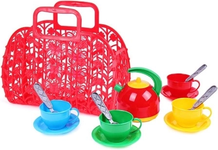 Spalvingas vaikiškas arbatos rinkinys – idealus mažosioms šeimininkėms! Šiame rinkinyje yra viskas, ko reikia arbatos popiečiams rengti, o viskas sudėta į praktišką plastikinį krepšį, kuris padeda neprarasti atskirų detalių.