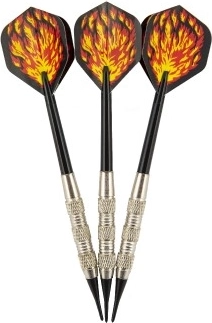 Rekreacinės strėlės su plastikiniu antgaliu saugesniam žaidimui namuose. Rinkinyje yra 3 vnt. strėlių, kurių ilgis 15 cm, su patraukliu liepsnų dizainu. Idealu taiklumo treniruotėms ir pramogoms su draugais.