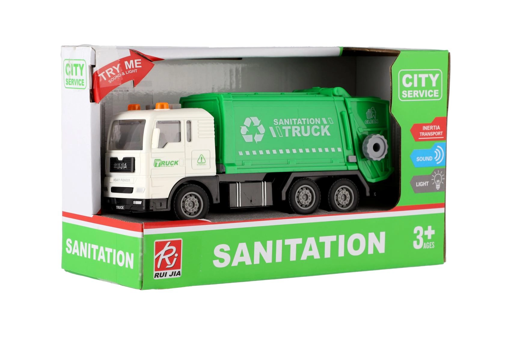 Šis plastikinis šiukšliavežis yra puikus žaislas vaikams nuo 3 metų. Dėl inercinės pavaros jis lengvai įsibėgėja, ant stogo esantys švyturėliai mirksi, o garsiniai efektai sustiprina realistišką įspūdį. Atidaromas ir pakeliamas konteineris skatina kūrybišką žaidimą ir lavina motoriką.