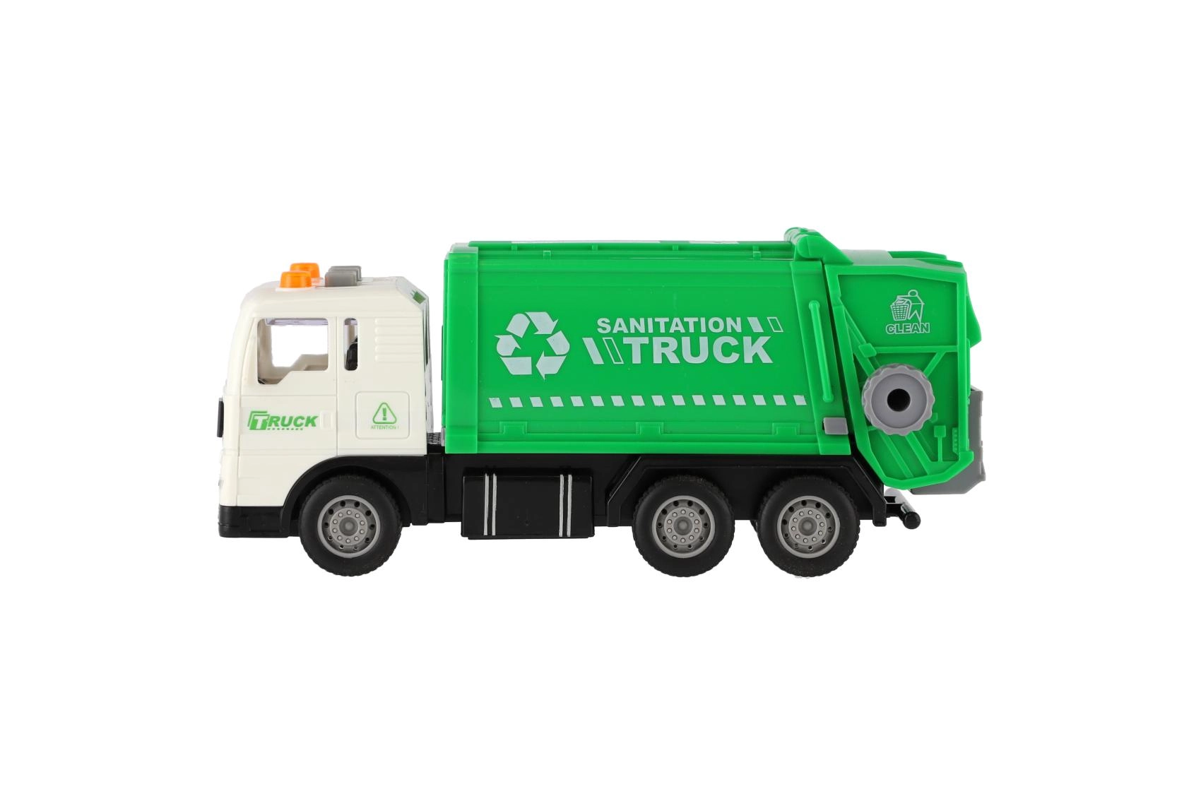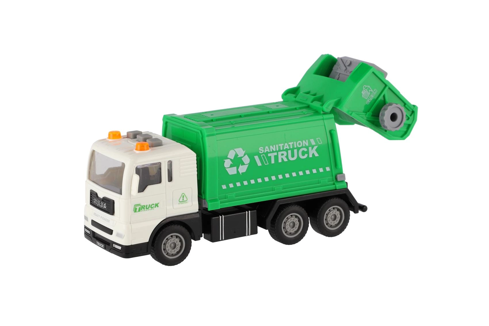 Stilingas šiukšliavežis mažiesiems vairuotojams suteikia realistiško žaidimo džiaugsmą dėl inercinės pavaros, švyturėlių ir garsinių efektų. Masto 1:32 modelis turi atidaromą ir pakeliamą konteinerį, tad vaikai gali patirti tikrą šiukšliavežio darbą. AG13 baterijos įtrauktos į pakuotę, todėl žaisti galima iškart.