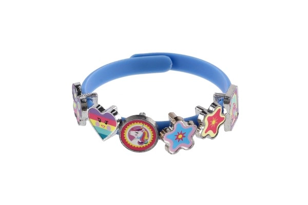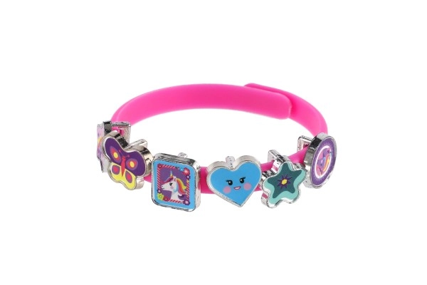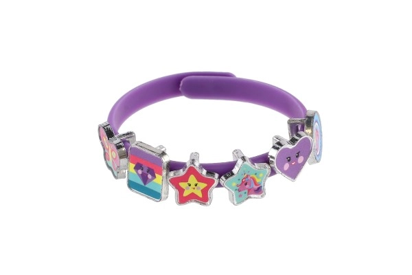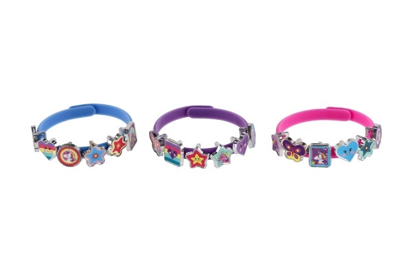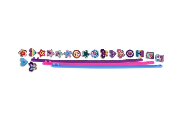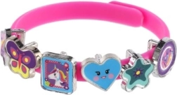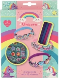 Atrask fantazijos pasaulį su linksmu vienaragių tematikos apyrankių kūrimo rinkiniu. Pakuotėje rasi tris elastingas apyrankes rožinės, mėlynos ir violetinės spalvų bei aštuoniolika spalvotų pakabukų žvaigždučių, širdelių, drugelių ir personažų formų. Kiekvieną dieną gali susikurti vis kitokį stilių – nuo subtilaus iki itin ryškaus.