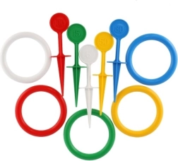 Paprastos taisyklės: įsmeikite kuoliukus į žemę ir mėtykite į juos spalvotus žiedus. Kas pataiko, tas pelno taškus! Dėl ryškių spalvų ir įvairių kuoliukų bei žiedų žaidimas yra lengvai atpažįstama ir įtraukianti veikla.