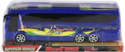 Autobusas prieinamas dviejų patrauklių spalvų – raudonos ir mėlynos, todėl galima rinktis pagal vaiko skonį.