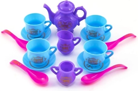 Šis universalus vaikiškas indų rinkinys pradžiugins kiekvieną mažąją virėją ar šeimininkę. Dėl lengvos plastikinės konstrukcijos vaikams lengva juo naudotis ir saugiai „paruošti“ kavytę ar arbatą draugams bei minkštiems žaislams. Rinkinyje yra viskas, ko reikia realistiškam žaidimui ir stalo etiketo mokymuisi.