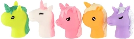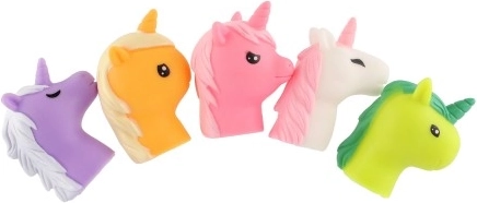 Šiame rinkinyje yra penki guminiai vienaragiai skirtingų spalvų, kiekvienas su unikaliu dizainu ir išraiška. Jie pagaminti iš aukštos kokybės medžiagos, kuri užtikrina jų ilgaamžiškumą ir saugumą žaidžiant.