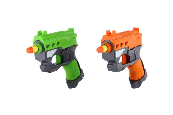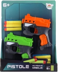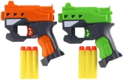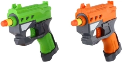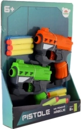 Kokybiška plastikinė konstrukcija patrauklių spalvų (oranžinė ir žalia) yra lengva, patvari ir nereikalauja baterijų. Pakuotėje yra 2 pistoletai ir 6 šoviniai, tad turite viską sąžiningam dvikovai iškart po išpakavimo.