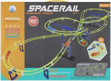 Spacerail rutulinė trasa – puikus pasirinkimas mažiesiems konstruktoriams. Tvirti plastikiniai pagrindai ir atramos patikimai laiko visą konstrukciją, o elastingos dalys leidžia kurti įvairias kilpų, posūkių ir nuokalnių kombinacijas. Vaikai gali statyti pagal instrukciją arba vadovaudamiesi savo fantazija.