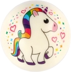 Mėgaukitės valandomis aktyvaus žaidimo su putų kamuoliuku, papuoštu linksmomis vienaragio iliustracijomis. Dėl minkštų putų jis švelnus rankoms ir baldams, tačiau gerai šokinėja ir lengvai pagaunamas. Spalvų įvairovė ir mieli motyvai skatina judėjimo džiaugsmą ir žaidimą.