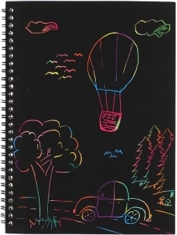 Tiesiog pabraižykite, ir po juodu paviršiumi išryškės spindinčios spalvos. Puikus kūrybinis užsiėmimas be dažų ir klijų.