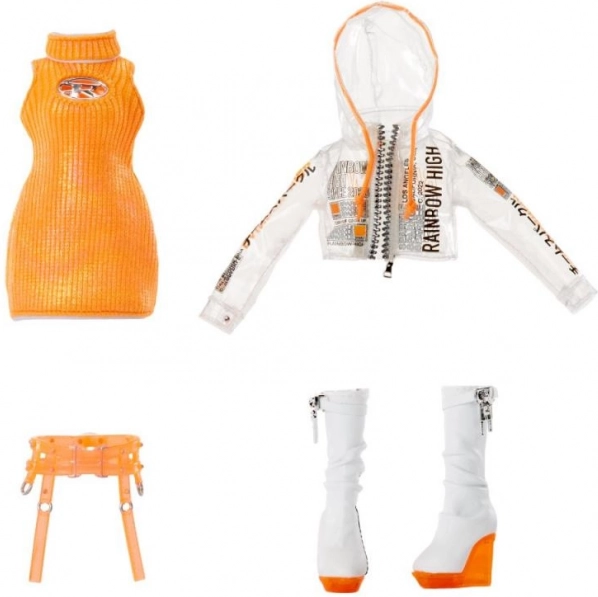 Lėlė tinka tiek vaizduotės žaidimams, tiek kaip modelis mados pasirodymuose. Drąsi oranžinė išvaizda ir unikalus aprangas suteikia estetinį potyrį ir skatina vaikų kūrybišką žaidimą. Įženkite į Rainbow High pasaulį ir leiskite fantazijai skristi aukštai!