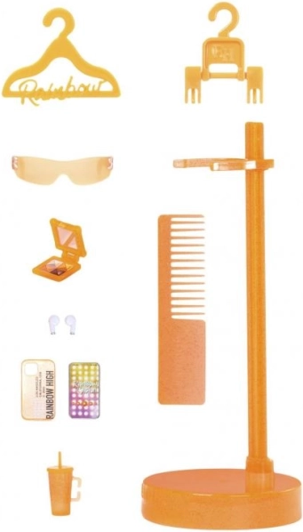 Lėlė komplektuojama su daugybe stilingų aksesuarų, įskaitant šukas, saulės akinius, pakabas, makiažo paletę ir gėrimo puodelį, todėl puikiai tinka stiliui kurti ir žaisti.