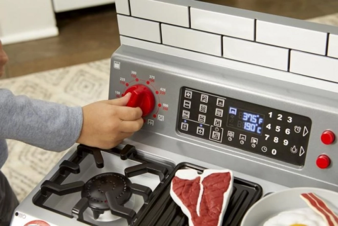 Sukami ratukai ir aiški valdymo panelė su indikatoriais paverčia gaminimą realistišku malonumu. Vaikai gali nustatyti temperatūrą ir atidaryti orkaitės dureles – viskas saugiai ir paprastai.