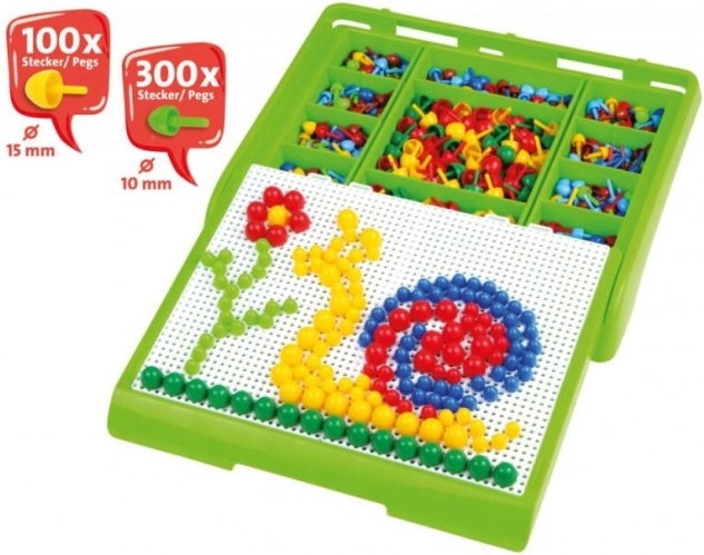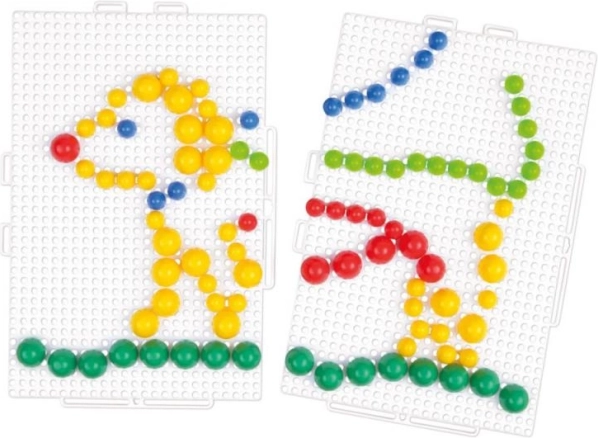 Vaikai, naudodami ryškius kaištukus, gali kurti gražius raštus, kas skatina kūrybiškumą ir fantaziją.