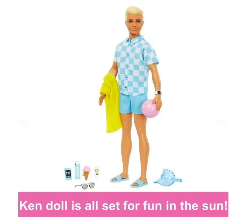 Kurkite vasaros istorijas, pilnas saulės ir pramogų, su paplūdimiui pasiruošusiu Kenu. Stilingas mėlynas aprangas, lengvi marškiniai ir teminiai priedai suteikia begalę žaidimo ir pasakojimo galimybių. Dėl detalių, tokių kaip logotipas ant šlepečių ar prisegiamas ledų ragelis, scenos atrodo realistiškos ir smagios.