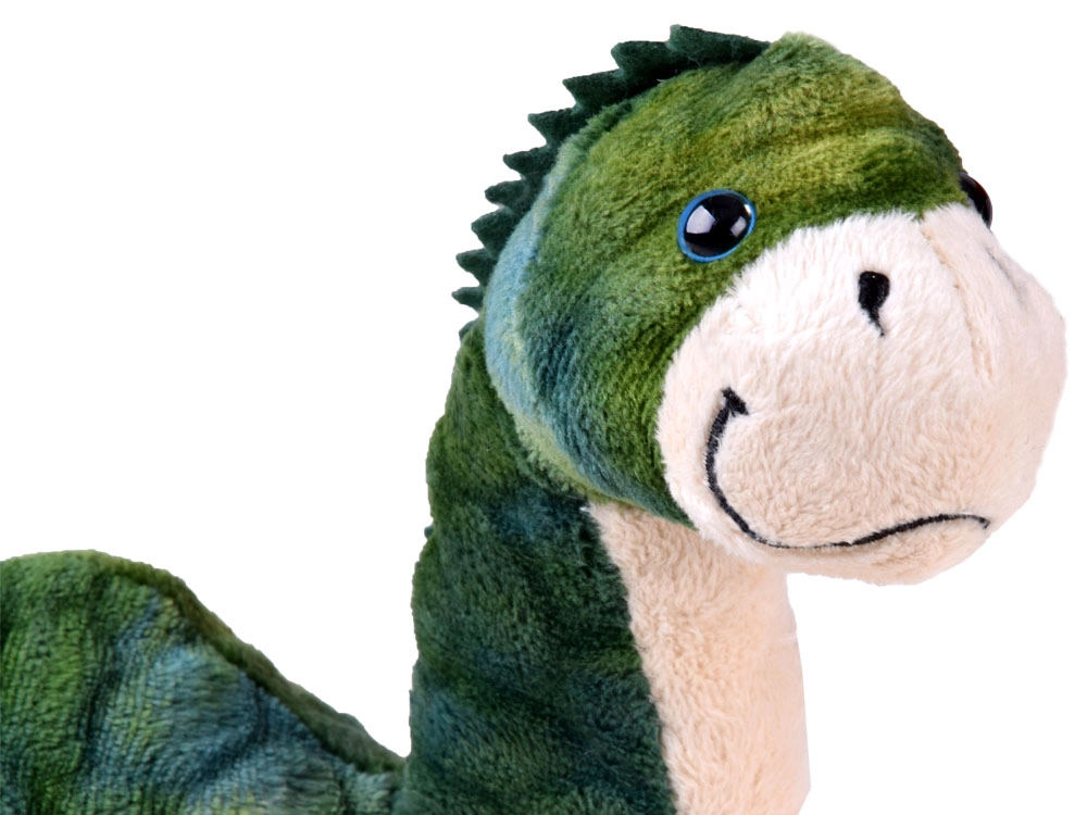 Šis pliušinis dinozauras pradžiugins kiekvieną vaiką, mėgstantį priešistorinį pasaulį. Švelnus ir minkštas paviršius, žalias kūnas su šviesesniu pilvuku ir siuvinėtos detalės paverčia jį saugiu ir patikimu bičiuliu tiek lovelėje, tiek kelionėse. Patogus glėbis ir saugus žaidimas viename.