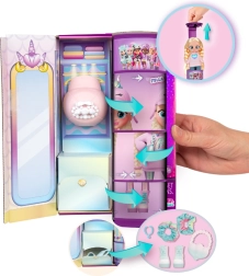Išpakavimas – tikra pramoga! Pasukite specialų vamzdį – originalią dėžutę, kuri tarnauja kaip stilinga spinta – ir atraskite daugiau nei 9 aksesuarus: aprangos dalis, rankinę, lankelį arba kepurę, porą batų su kojinėmis ir BFF vėriniu. Kiekviena detalė sukurta skatinti fantaziją ir lavinti stiliaus pojūtį.