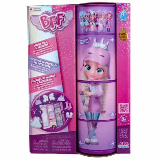 Susipažinkite su paauglėmis herojėmis iš Cry Babies Magic Tears pasaulio – dabar kaip BFF! Lėlė Stella yra maždaug 15 cm ūgio, turi šilkinius nailoninius plaukus, žėrinčias akis ir modernią aprangą, įkvėptą naujausių tendencijų. Dėl sąnarių lengvai užima įvairias pozas, tad vaikai mėgausis kūrybišku žaidimu ir mados burtų akimirkomis.