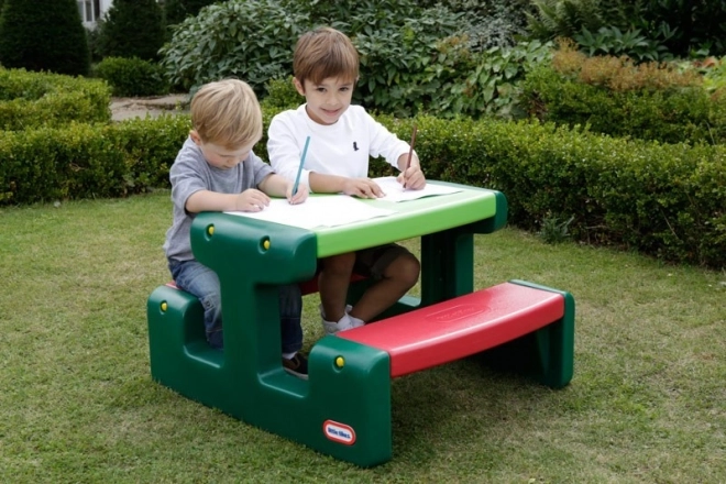 - Vaikiškas pikniko stalas su integruotais suoleliais
