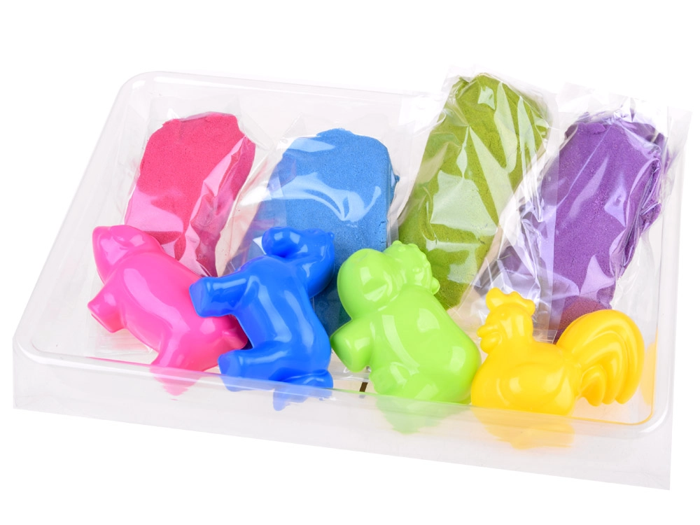 Dėka spalvoto smėlio dėžutės ir įvairių formelių vaikai gali susikurti ištisus spalvotus ūkinius gyvūnus.