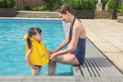 Vaikiška Bestway plaukimo liemenė sukurta taip, kad suteiktų maksimalų saugumą dėl trijų nepriklausomų oro kamerų. Atraminis apykaklės kraštas užtikrina, kad galva išliktų virš vandens paviršiaus. Dėl reguliuojamų sagtelių liemenę lengva apsivilkti ir ji gerai priglunda prie vaiko kūno. Liemenę puošia linksma mėlyna aštuonkojė, kuri traukia dėmesį ir motyvuoja vaikus plaukti.