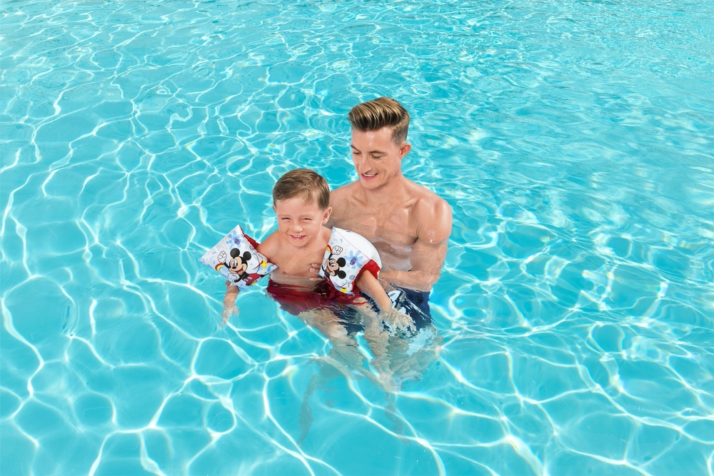 Linksmos Bestway pripučiamos rankovės su DISNEY MICKEY MOUSE motyvu padeda vaikams vandenyje jaustis užtikrinčiau. Pagamintos iš patvaraus PVC, turi saugos vožtuvus ir dvejamas oro kameras geresniam plūdrumui ir saugumui. Idealu baseinui, paplūdimiui ir atostogoms vaikams nuo 3–6 metų ir svoriui 19–30 kg.