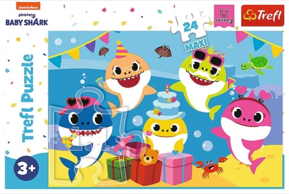 Linksmieji Baby Shark – tai didelė dėlionė iš 24 itin didelių detalių, kuri pradžiugins visus jūrų gyvūnų mylėtojus. Sudėjus gausite didelį paveikslą, kurio matmenys 600×400 mm.