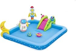 Pripučiamas vandens žaidimų parkas Galaktika BESTWAY suteikia vaikams begalę linksmybių valandų. Šis spalvingas baseino rinkinys su kosmine tematika apima smagius elementus, tokius kaip čiuožykla, purkštukas ir žiedų mėtymo žaidimas, pagamintas iš aukštos kokybės PVC medžiagos.