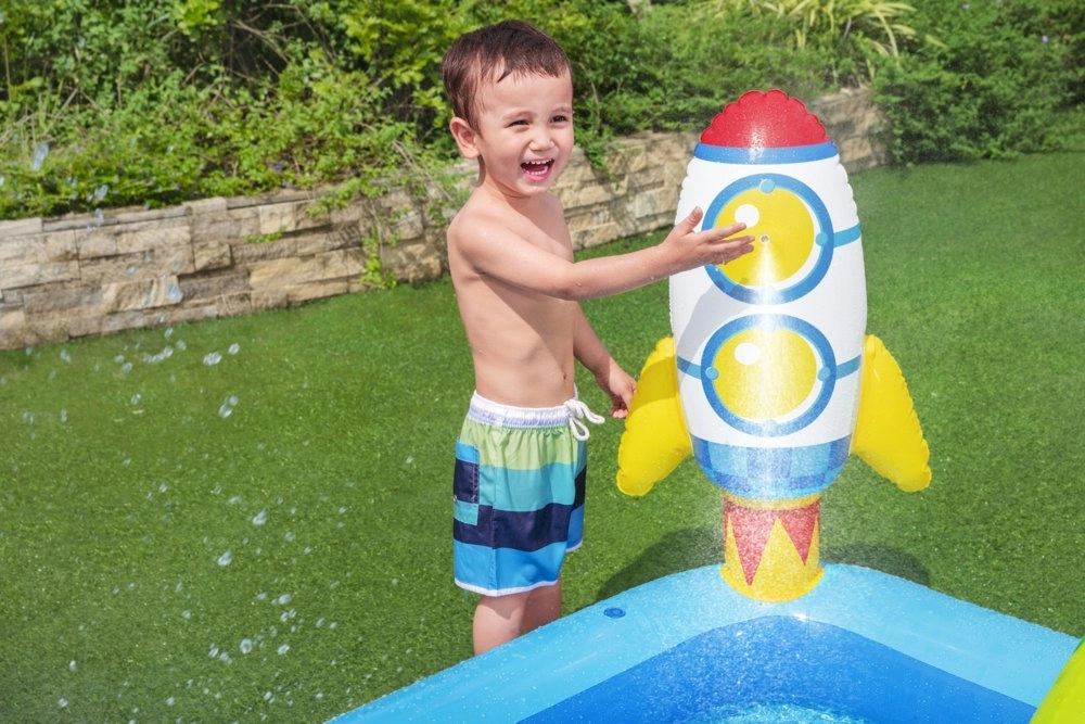 Su pripučiamu vandens žaidimų parku Galaktika BESTWAY vaikus laukia interaktyvios ir dinamiškos pramogos. Šis kompaktiškas baseinas siūlo daugybę atrakcijų, kurios skatina kūrybišką žaidimą ir padeda atsivėsinti karštomis vasaros dienomis. Spalvingi elementai ir kosminė tematika sukurti maksimaliam žaidimo džiaugsmui.